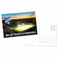 Limitowana kartka pocztowa stworzona z okazji 80-lecia klubu (1946–2026). Dynamiczne, nocne ujęcie stadionu z lotu ptaka oddaje wyjątkową atmosferę meczowego wieczoru i potęgę klubowych emocji. Jubileuszowe logo nadaje całości kolekcjonerskiego charakteru. To nie tylko kartka — to fragment historii, który możesz mieć u siebie